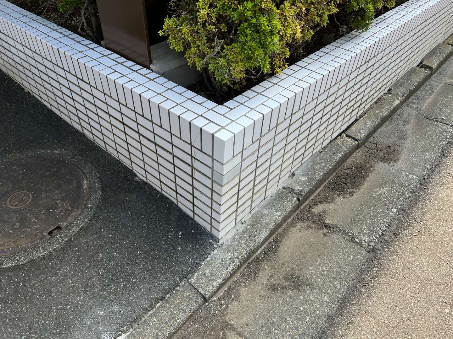 花壇のタイルが割れてしまったため、割れた部分の補修を行いました。